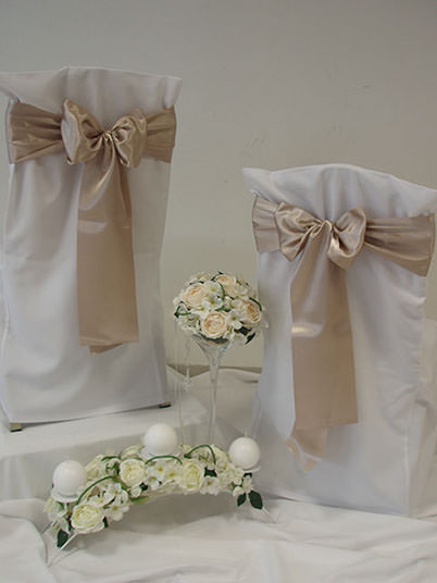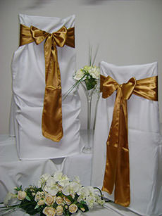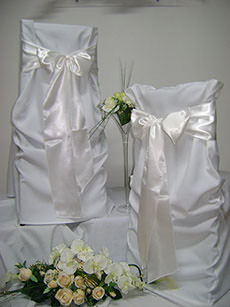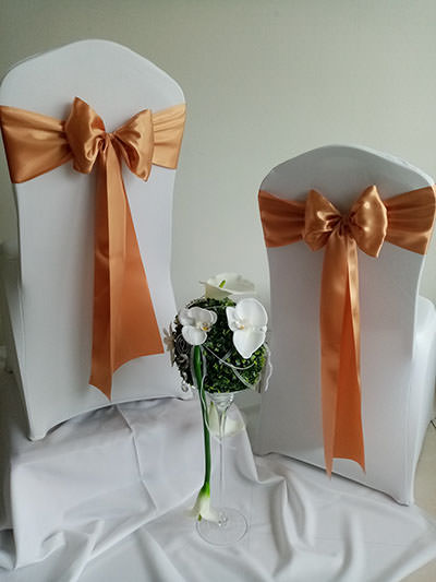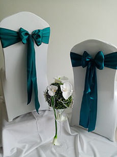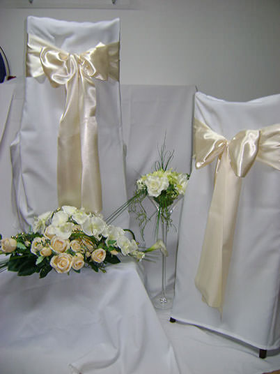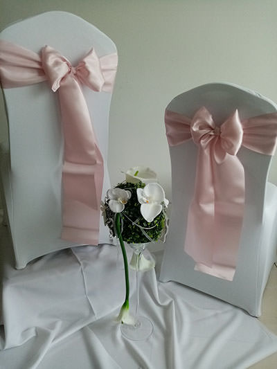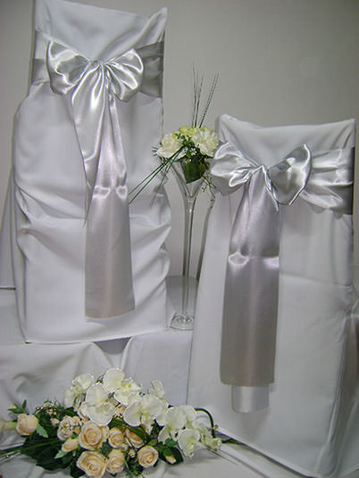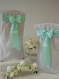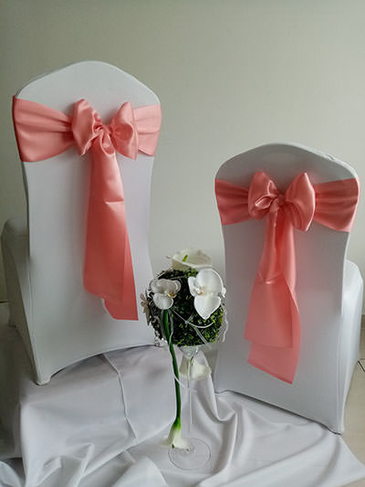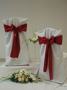 Návleky na stoličky sú neodmysliteľnou súčasťou slávnostného stolovania, ktoré dodávajú svadobnej sále nádych elegancie a noblesy.