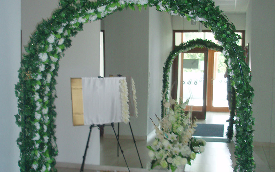 – Žardiniera umelá ( ikebana ) na svadobný stôl