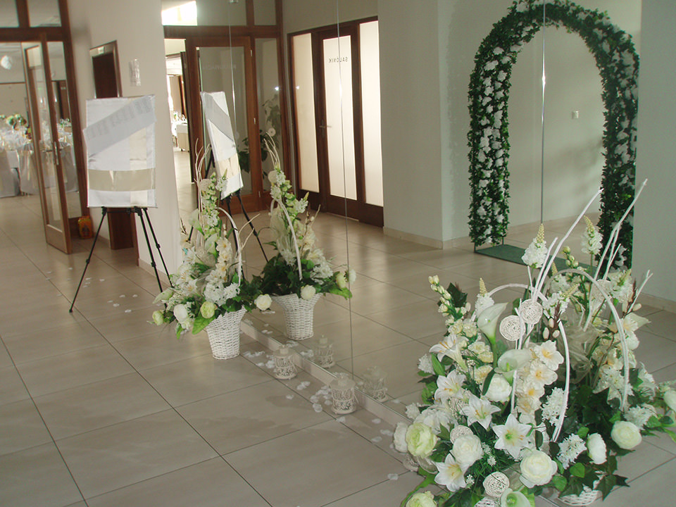 – Žardiniera umelá alebo zo živých kvetov( ikebana ) na svadobný stôl