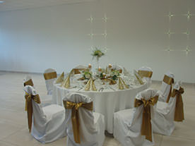Ponúkame Vám na prenájom okrúhle stoly priemeru 180cm, ktoré sú vhodné pre 10 osôb.